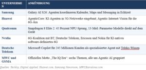 - Samsung, Huawei, Qualcomm und Nokia rahmten ihre Ankündigungen rund um autonome Agentensysteme ein.