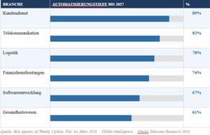 Abbildung 4: Erwartete Automatisierungstiefe durch Agentic AI nach Sektor bis 2027