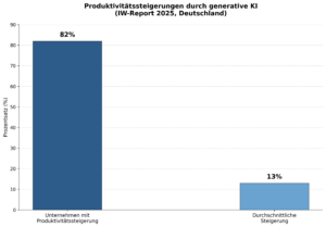 • 82% der Unternehmen berichten von 13% Produktivitätssteigerungen durch generative KI (IW-Report 2025)